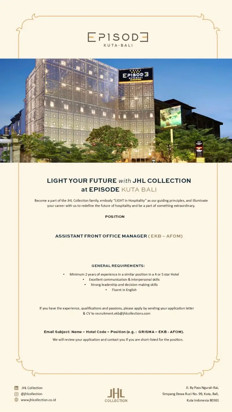 This job listing was provided by Hospitality Job Vacancies. To apply, please use the link in the job description.