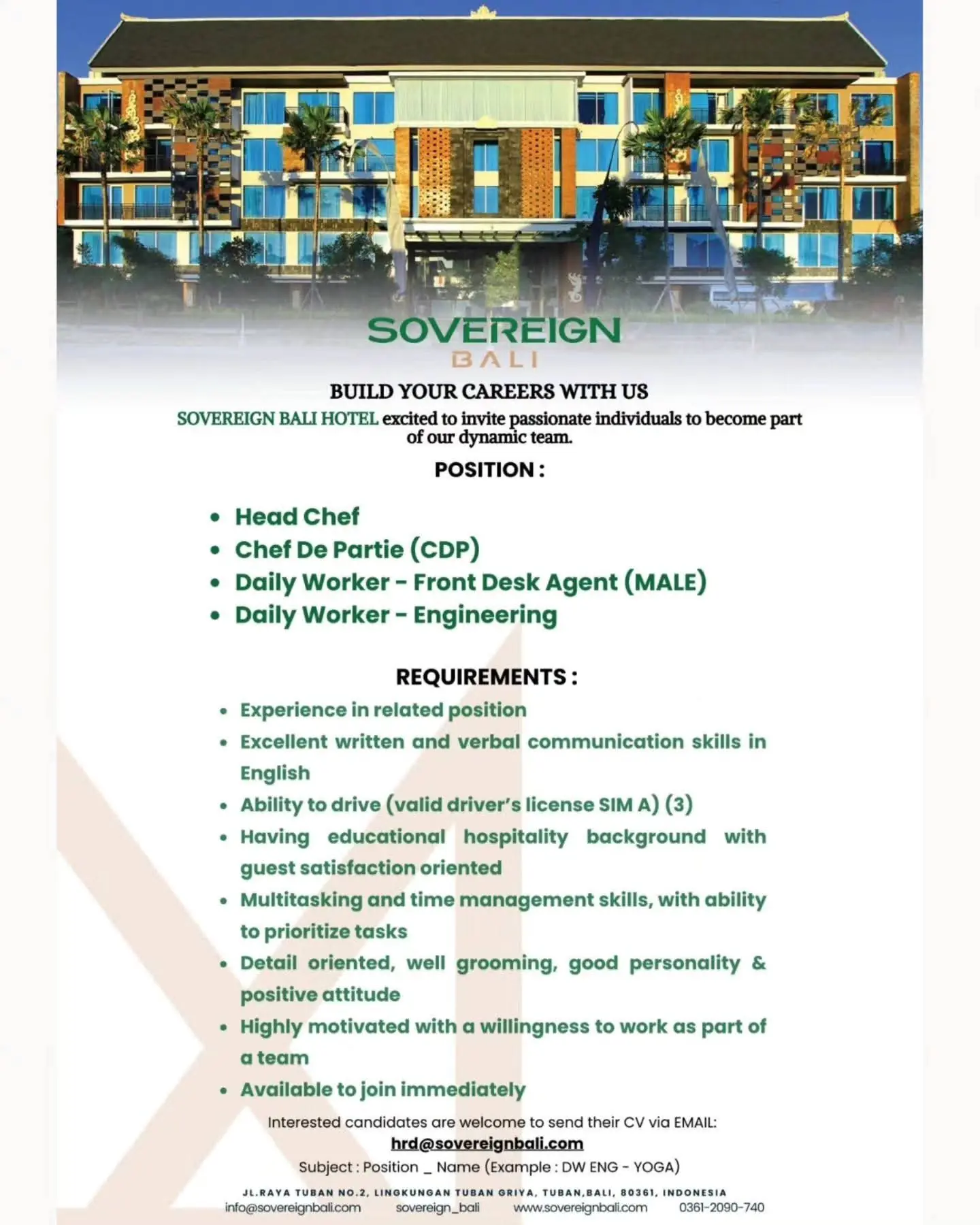 This job listing was provided by Hospitality Job Vacancies. To apply, please use the link in the job description.
