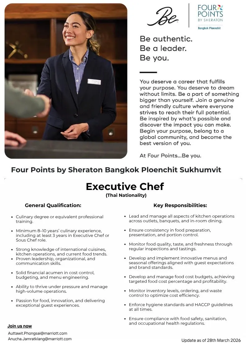 Works together with the staff as a team to gain optimum production and exceed guest needs. Inspects grooming and attire of staff and rectifies any deficiencies. Completes opening and closing duties including setting up supplies and tools, cleaning all equipment and areas, including opening and locking doors, etc. Inspect kitchens, restaurants storage areas for organization […]