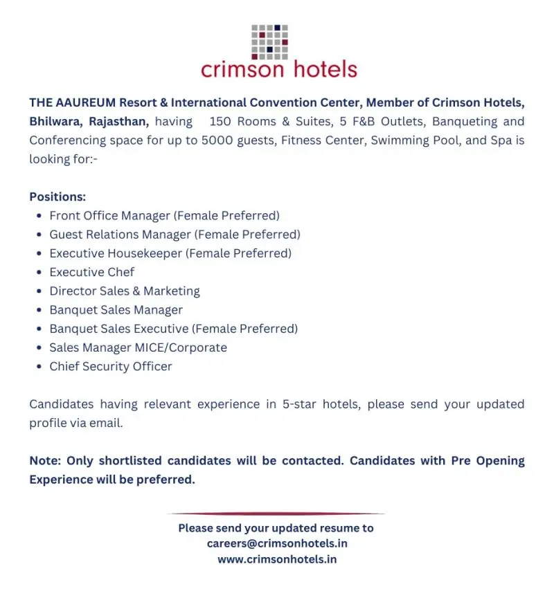 This job listing was provided by Hospitality Job Vacancies. To apply, please use the link in the job description.
