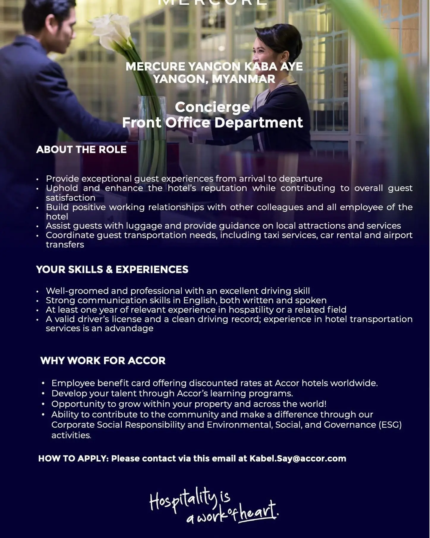 Mandarin Oriental Conservatorium is looking for a Doorman to join our Team. Are you a master of craft? Do you thrive in a team that succeeds together, demonstrating integrity and respect while acting responsibly? Do you embrace a growth mindset? We invite you to become a fan of the exceptional. Mandarin Oriental Hotel Group is the […]