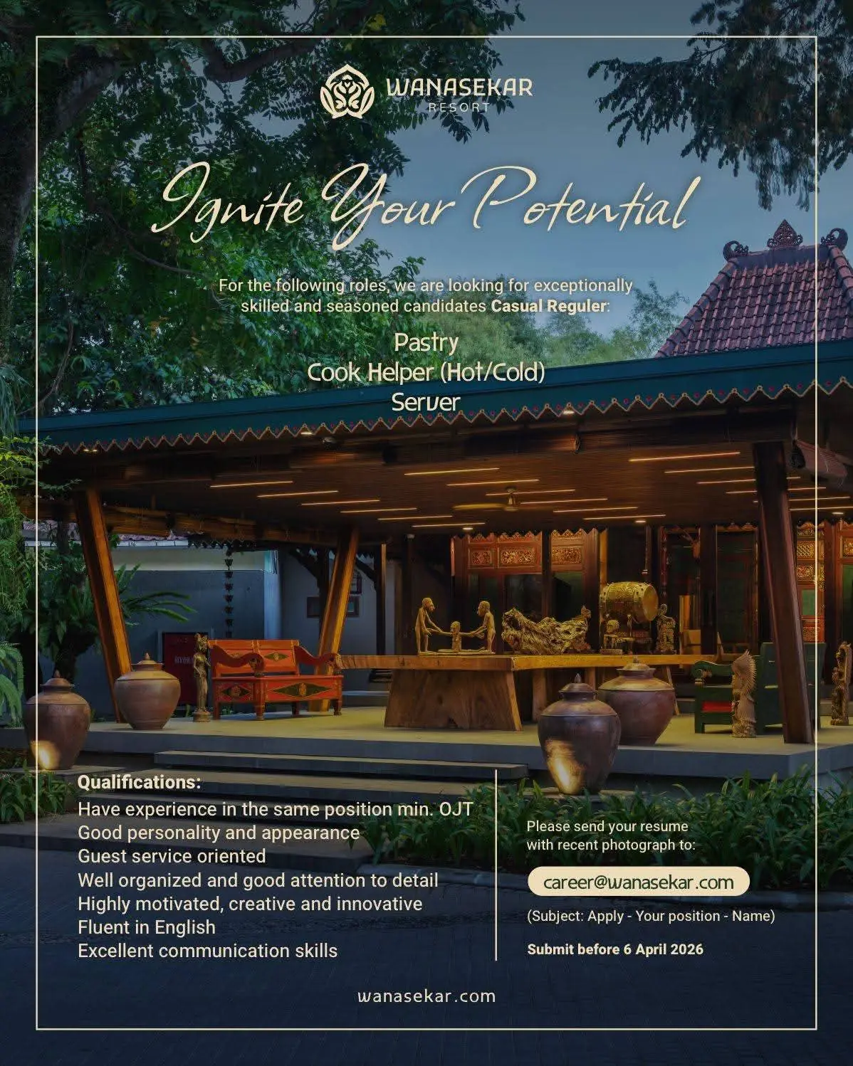 Job Description   Join our Michelin One Key-awarded hotel (two years running) and live by the credo “Make It Count.” Lead and mentor a team of 80 across multiple kitchens and event spaces in a fast-paced, hot, and humid 24-hour operation. Ensure the highest standards of cleanliness, safety, and efficiency while fostering a culture of […]