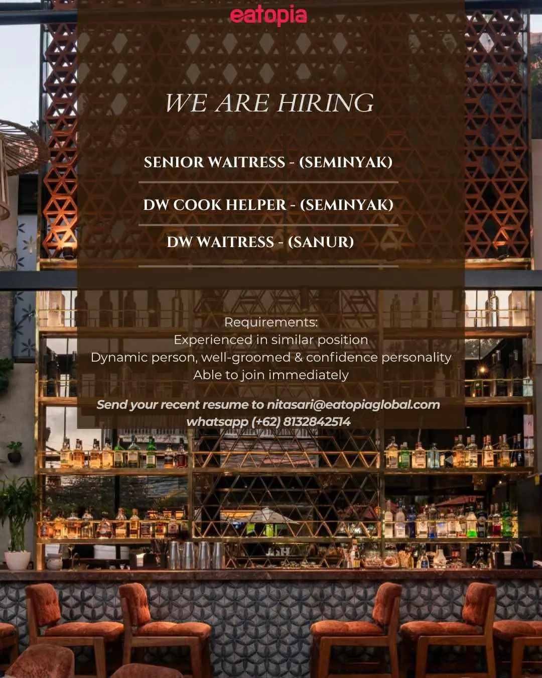 This job listing was provided by Hospitality Job Vacancies. To apply, please use the link in the job description.