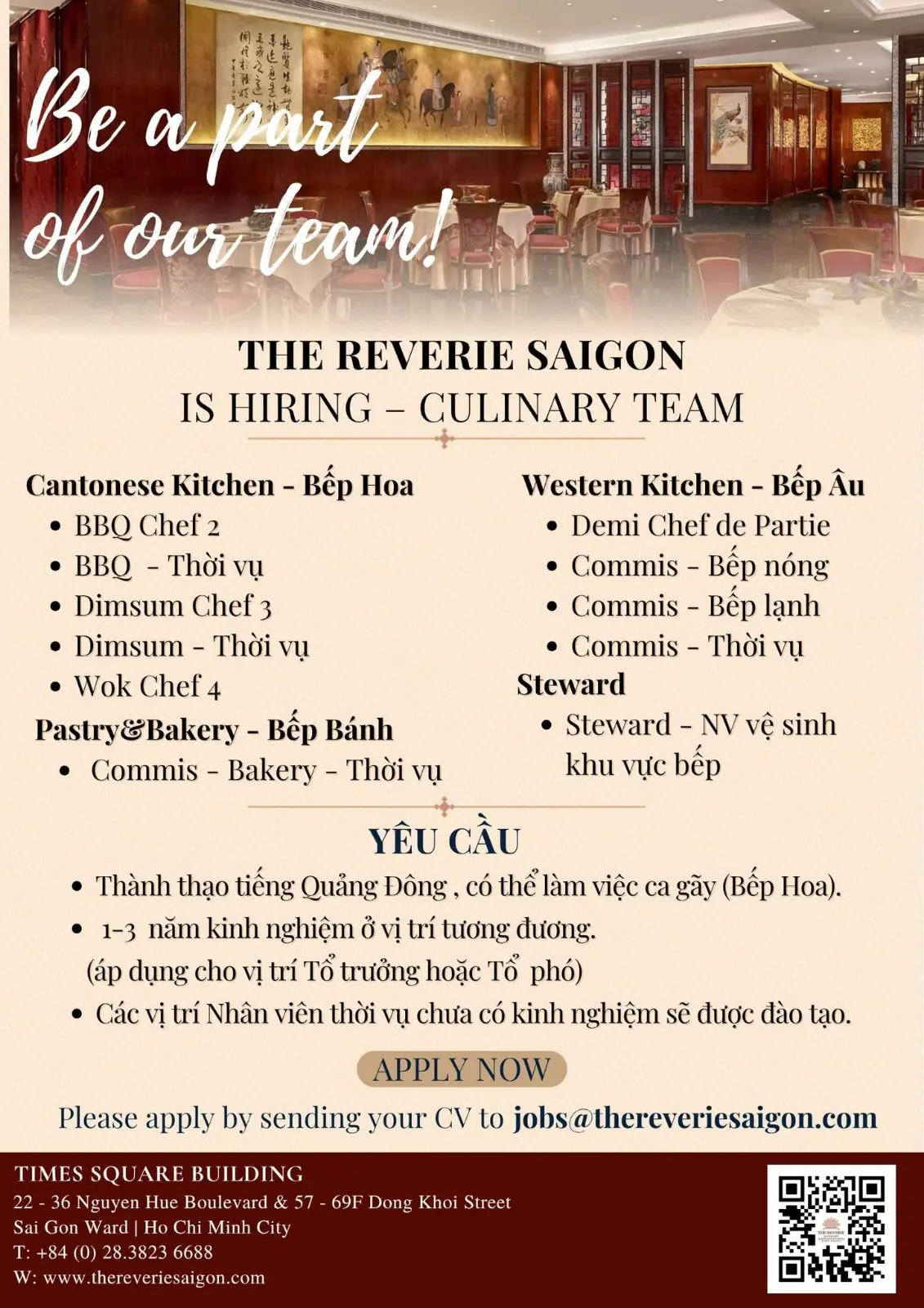 This job listing was provided by Hospitality Job Vacancies. To apply, please use the link in the job description.