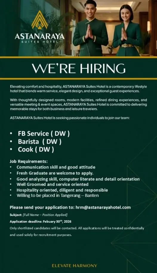 This job listing was provided by Hospitality Job Vacancies. To apply, please use the link in the job description.