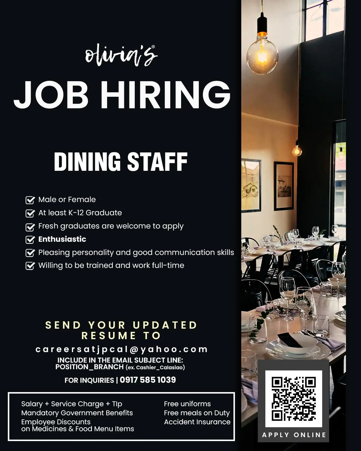 JOB DESCRIPTION A Waiter/ess (Server) is responsible for serving guests in a friendly, timely, and efficient manner to deliver an excellent Guest and Member experience while having extensive knowledge of menu offerings. What will I be doing? As a Waiter/ess (Server), you are responsible for serving guests in a friendly, timely, and efficient manner to […]