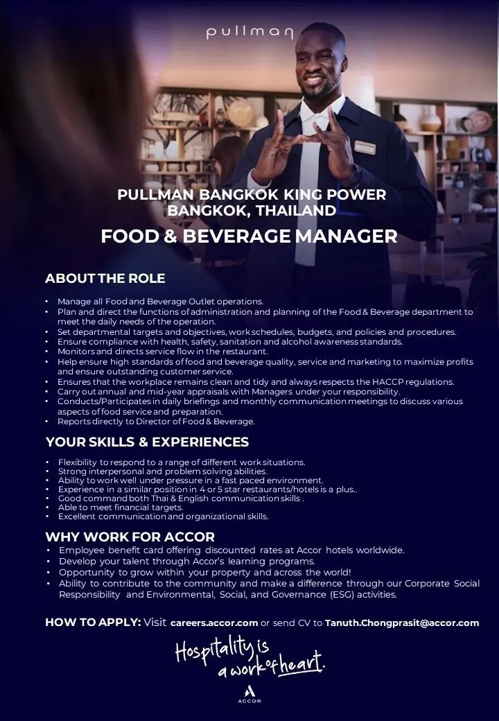 Company Description Pullman, the Upscale International Hotel brand for Accor, offers Lounge guests a new attitude for cosmopolitan business and leisure travellers visiting the Qantas Lounge Melbourne. At Qantas Lounges by Accor, we provide a team environment that is supportive and trusting at all levels and our people are encouraged to work collaboratively. Our […]