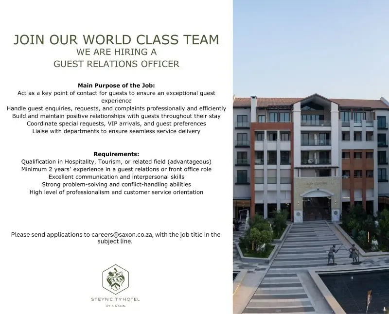 This job listing was provided by Hospitality Job Vacancies. To apply, please use the link in the job description.