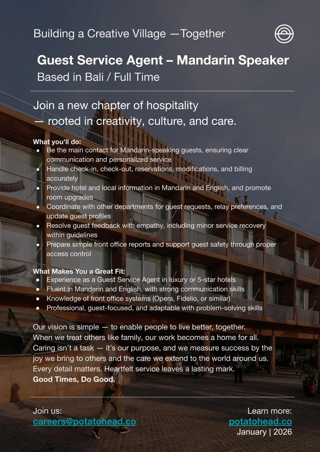 Our jobs aren’t just about giving guests a smooth check-in and check-out. Instead, we want to build and experience that is memorable and unique. Our Guest Experience Specialists take the initiative to deliver a wide range of services that guide guests through their entire stay. Their role goes beyond the traditional front desk to take […]