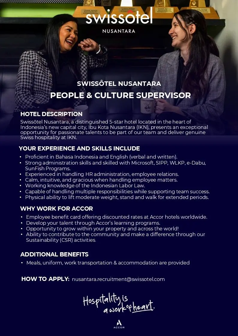 Join us at Accor, where life pulses with passion!​ As a pioneer in the art of responsible hospitality, the Accor Group gathers more than 45 brands, 5,600 hotels, 10,000 restaurants, and lifestyle destinations in 110 countries. While each brand has its own personality, where you will be able to truly find yourself, they all share a common ambition: to keep innovating and challenging the status-quo.​ By joining us, you will become a Heartist®, because hospitality is, first and foremost, a work of heart.​ You will join a caring environment and a team where you can be all you are. You will be in a supportive place to grow, to fulfil yourself, to discover other professions and to pursue career opportunities, in your hotel or in other hospitality environments, in your country or anywhere in the world!​ You will enjoy exclusive benefits, specific to the sector and beyond, as well as strong recognition for your daily commitment.​ Everything you will do with us, regardless of your profession, will offer a deep sense of meaning, to create lasting, memorable and impactful experiences for your customers, for your colleagues and for the planet. Hospitality is a work of heart,​ […]