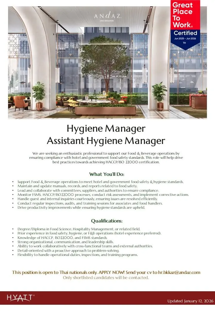 This job listing was provided by Hospitality Job Vacancies. To apply, please use the link in the job description.
