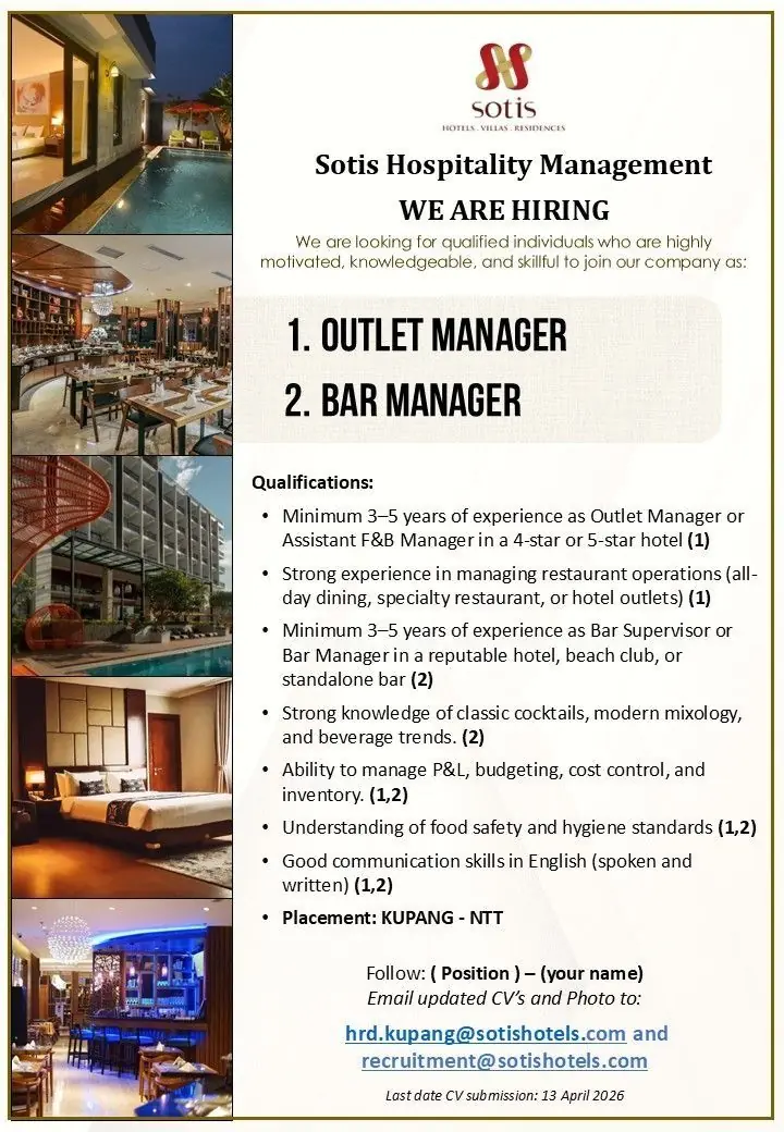 This job listing was provided by Hospitality Job Vacancies. To apply, please use the link in the job description.