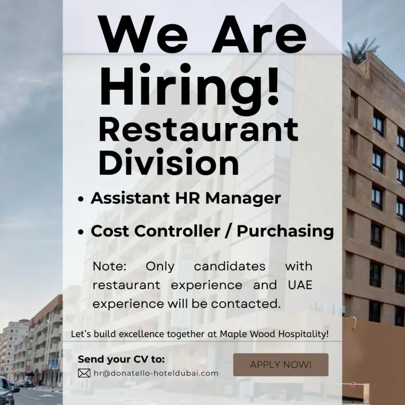 This job listing was provided by Hospitality Job Vacancies. To apply, please use the link in the job description.