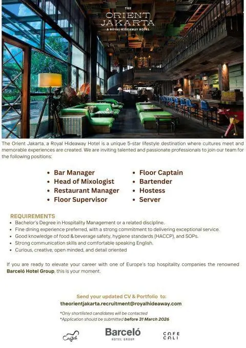 This job listing was provided by Hospitality Job Vacancies. To apply, please use the link in the job description.