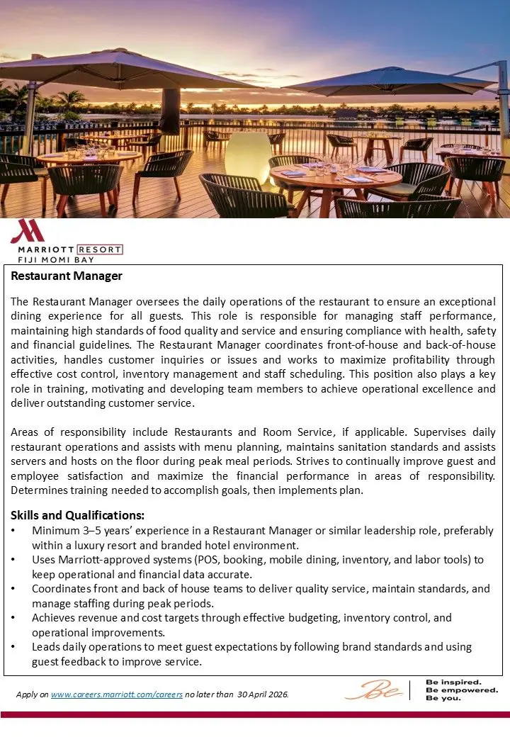 This job listing was provided by Hospitality Job Vacancies. To apply, please use the link in the job description.